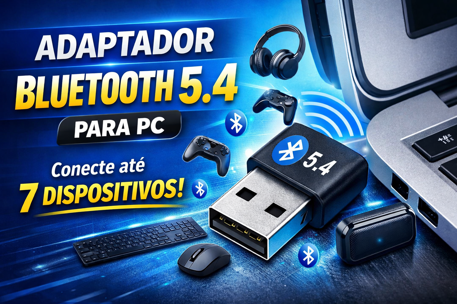 🔌🎧 Adaptador Bluetooth 5.4 para Computador – Conecte até 7 Dispositivos