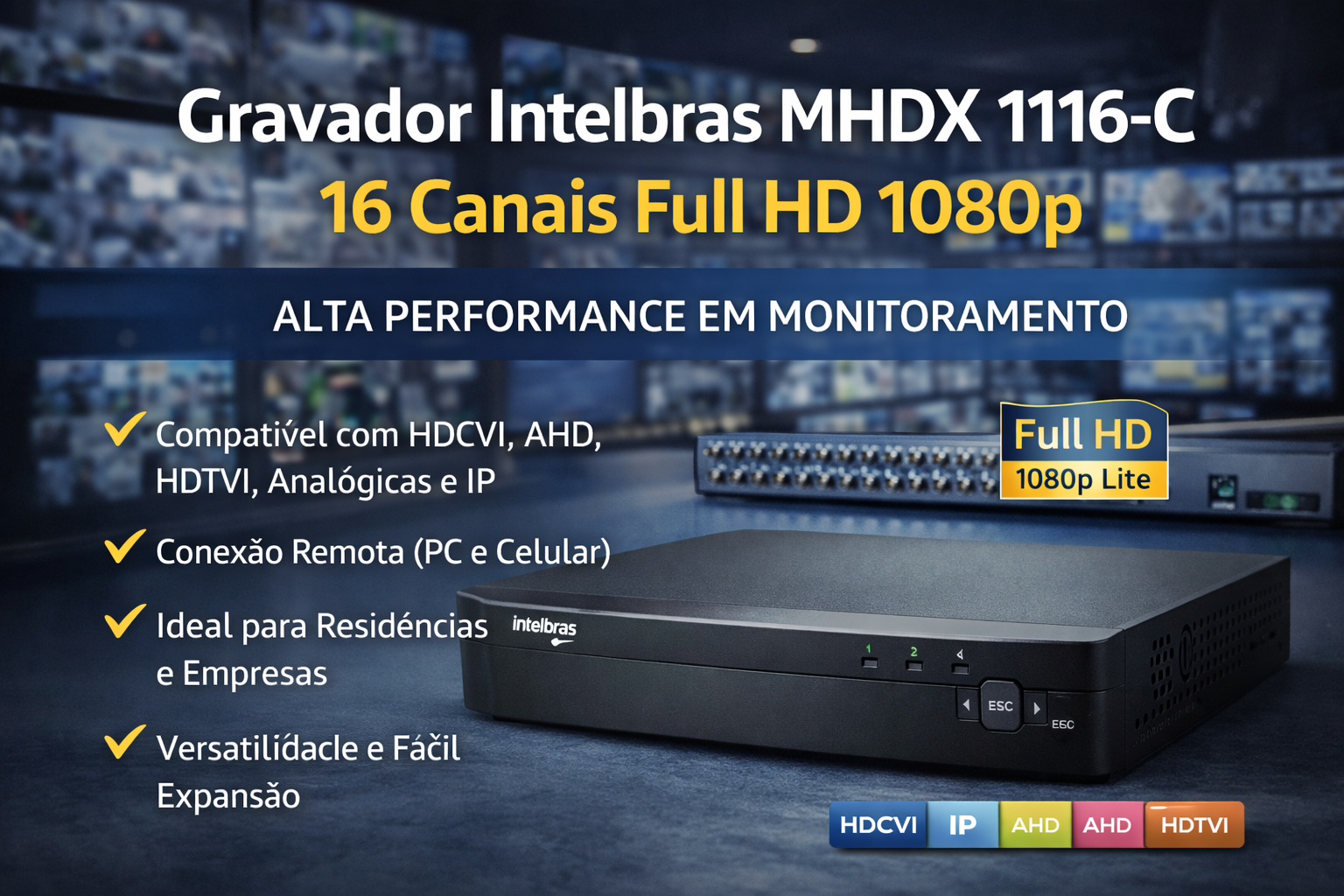 O Gravador Intelbras MHDX 1116-C é a solução ideal para quem busca um sistema de segurança robusto, moderno e confiável. Com suporte para até 16 câmeras e gravação em Full HD 1080p Lite, este DVR é amplamente utilizado em residências, empresas, comércios e condomínios.